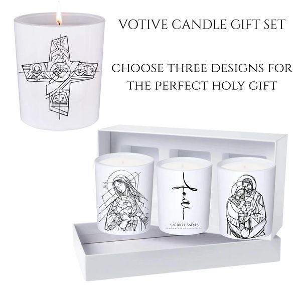 Each candle is thoughtfully crafted and presented in elegant white gloss jars, available in votive, 9cl and 20cl sizes. Our unique designs are created to bring a sense of peace and meaning into your space, making them perfect for places of worship, gift shops and religious retailers.